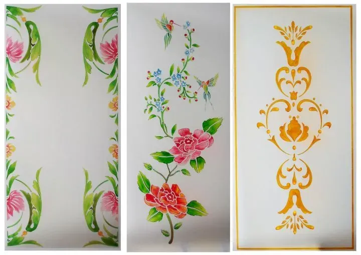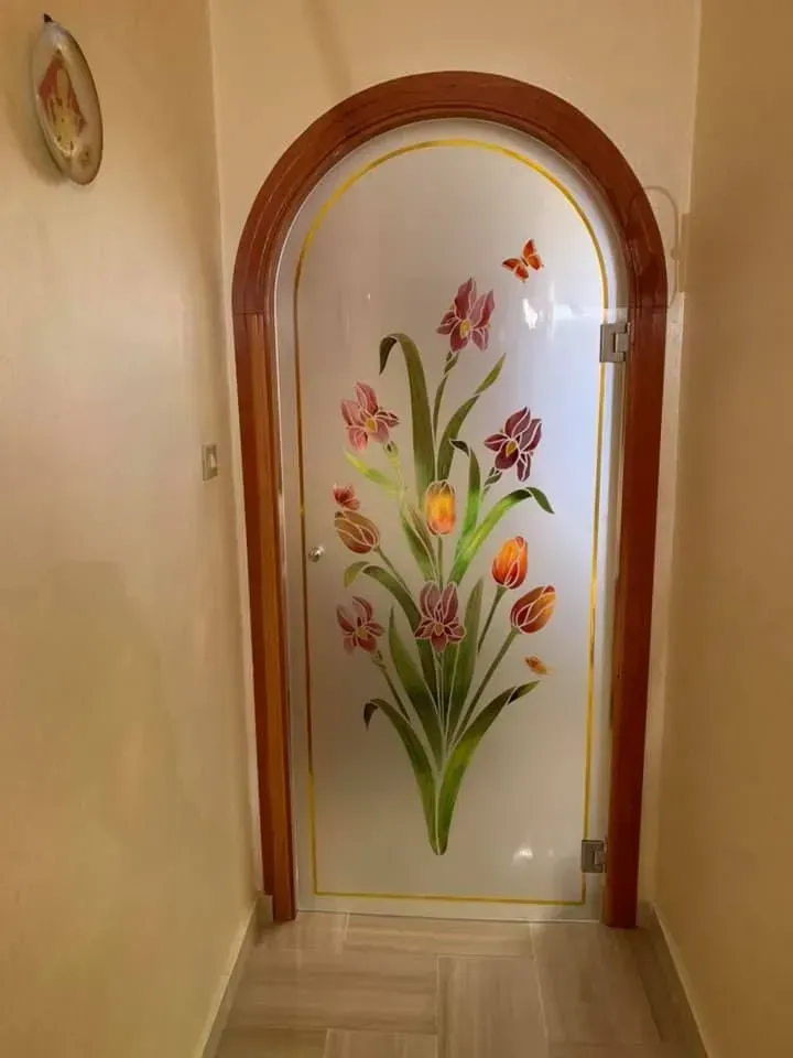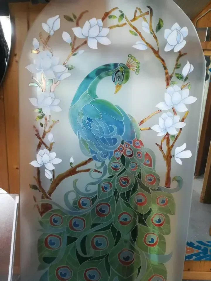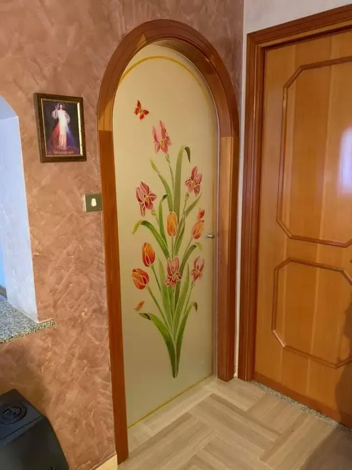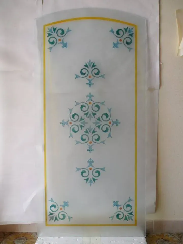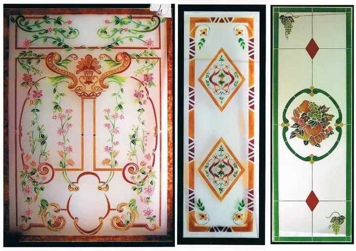 Disegni stile classico su vetro satinato scavato e pitturato colori a tua scelta
